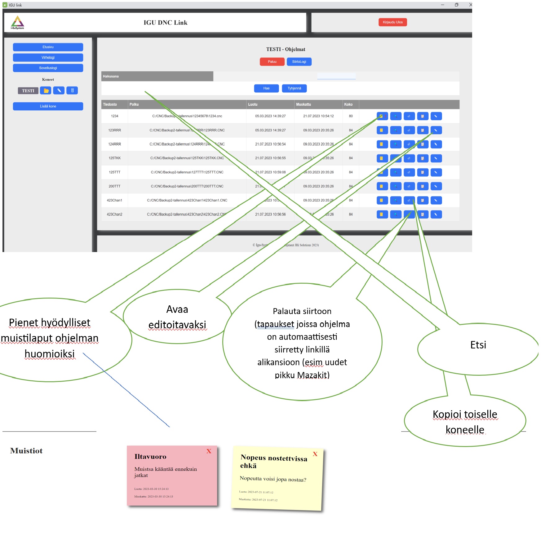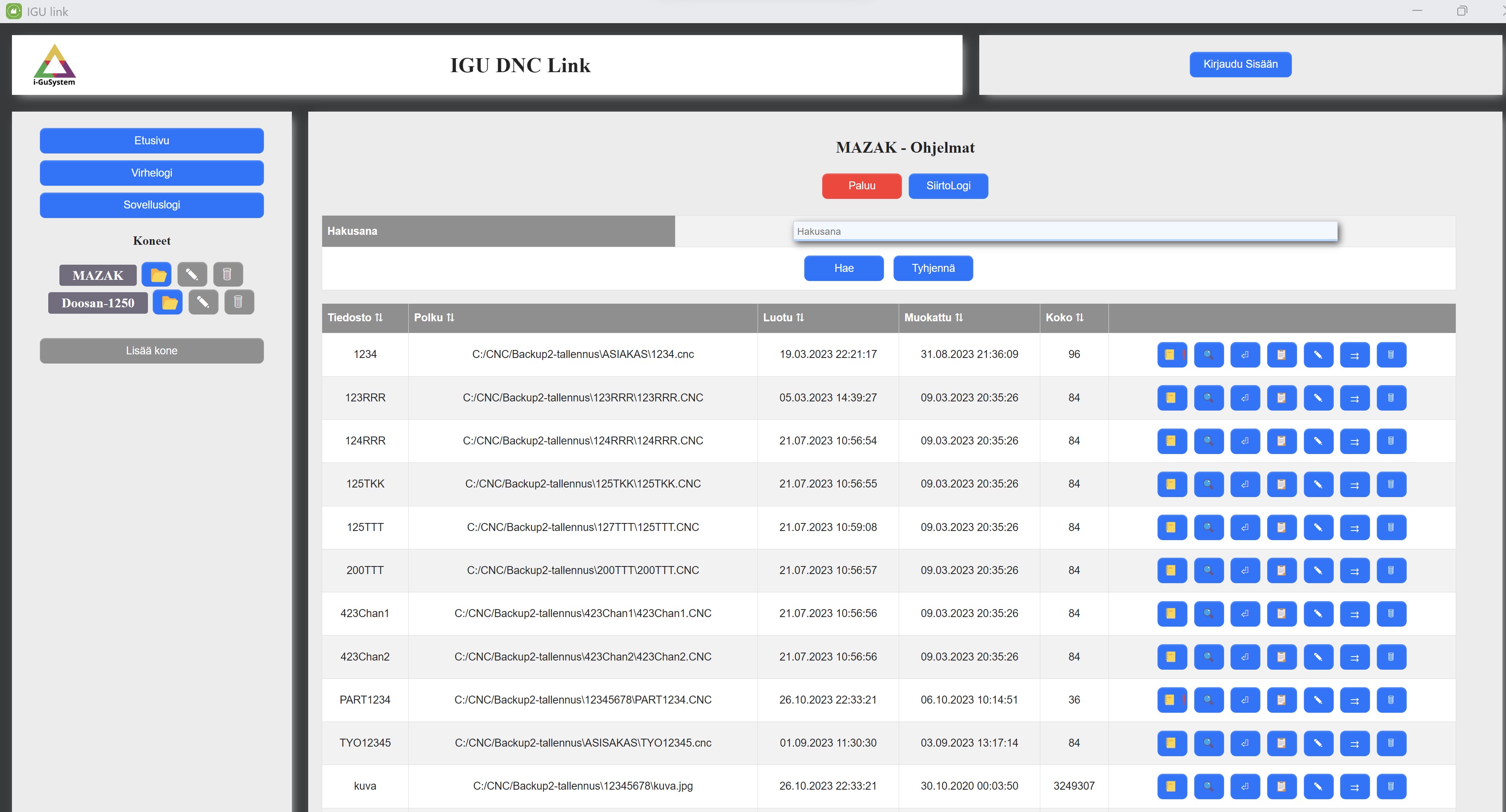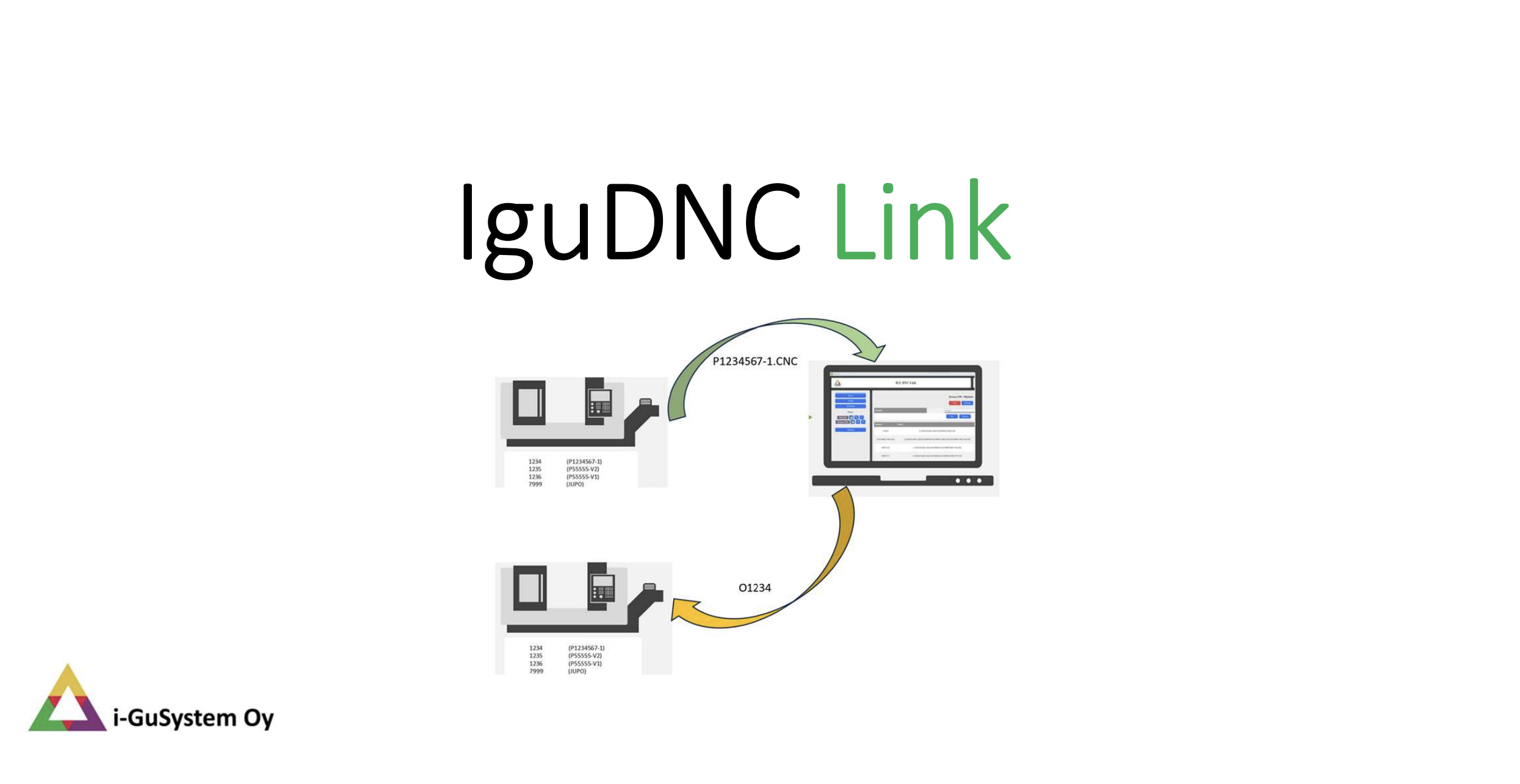Yleisimpien tiedonkeruujärjestelmien (ADC) ja tiedonsiirtojärjestelmien (DNC) muutostyöt, varaosat ja järjestelmien uudelleenkytkentä ja niiden vaatima logiikkaohjelmointi. DNC tiedonsiirtolinkit NC ohjelmien siirtoon. IGULink-järjestelmä tuotantoseisokkien välittömään havainnointiin sekä konetilojen seurantaan ja analysointiin. Datan tuottaminen räätälöidylle pilvipalvelulle ja IguADC sovellukselle. DNC Android ja DNC Windows ohjelmat NC ohjelmien ja niiden lisätietojen hallintaan. Tekoäly konepajoissa.CNC-ohjelman siirto. langaton CNC siirto. DNC-ohjelmasiirto. CNC tiedonsiirto WiFi. työstökone ohjelmansiirto. usb cnc tiedonsiirto. CNC-ohjelmien langaton siirto. NC-ohjelmien langaton siirto. RS232 CNC. RS-232 CNC. USB CNC. Wifi CNC