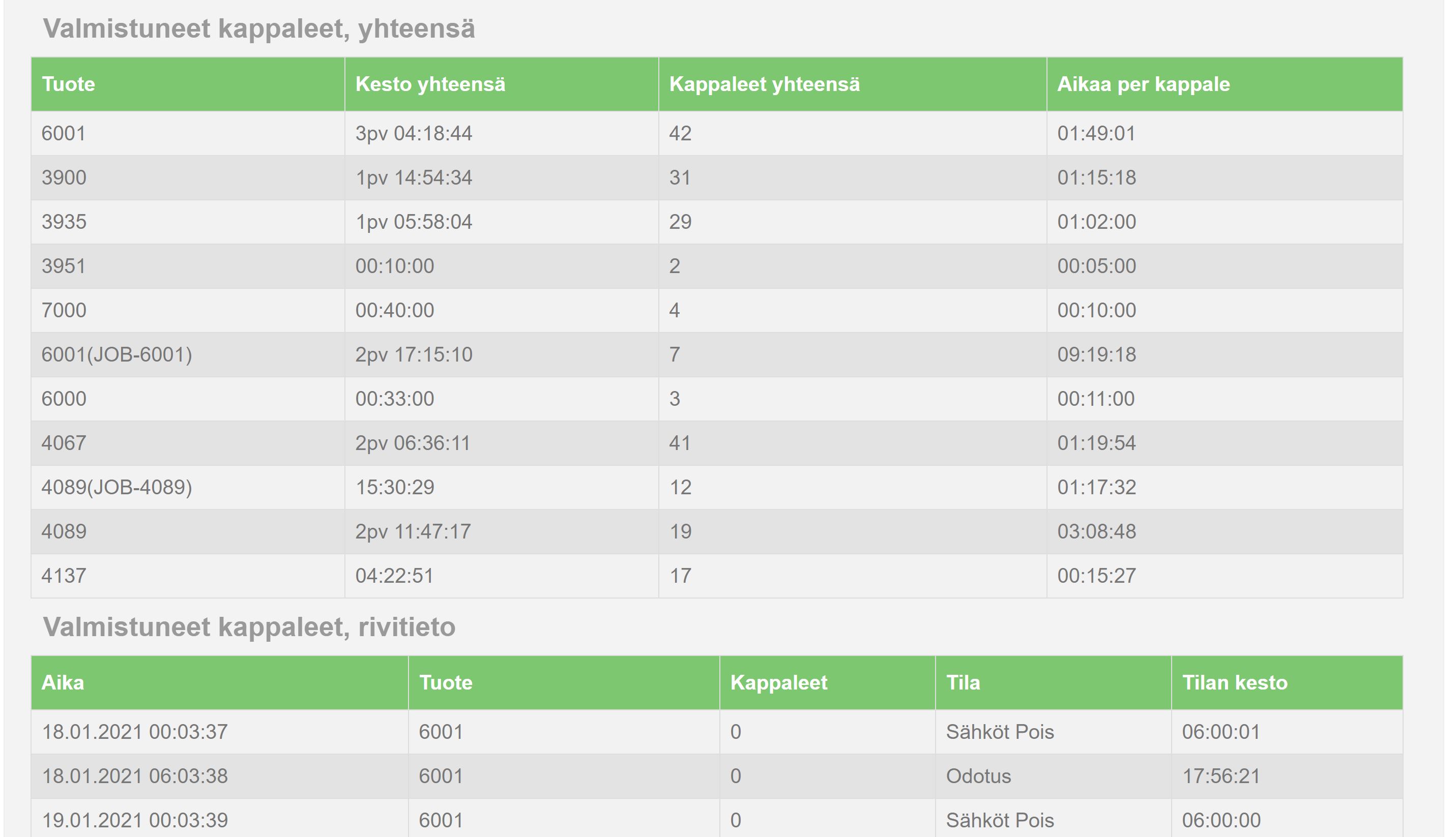 Haemme tuotantotiedonkeruudataa: